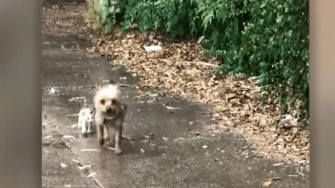 Dog spots soaked kitten and decides to do something remarkable (video)