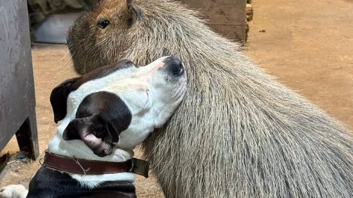 Capybara scales fences to be with his best friend… a dog