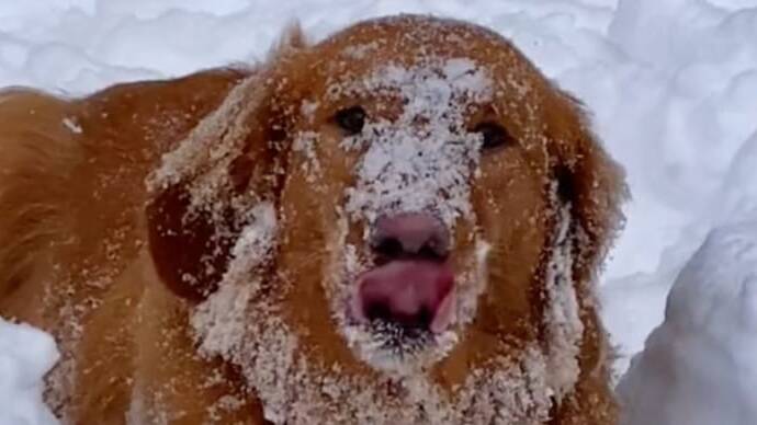 Golden retriever’s antics in the snow are making everyone smile