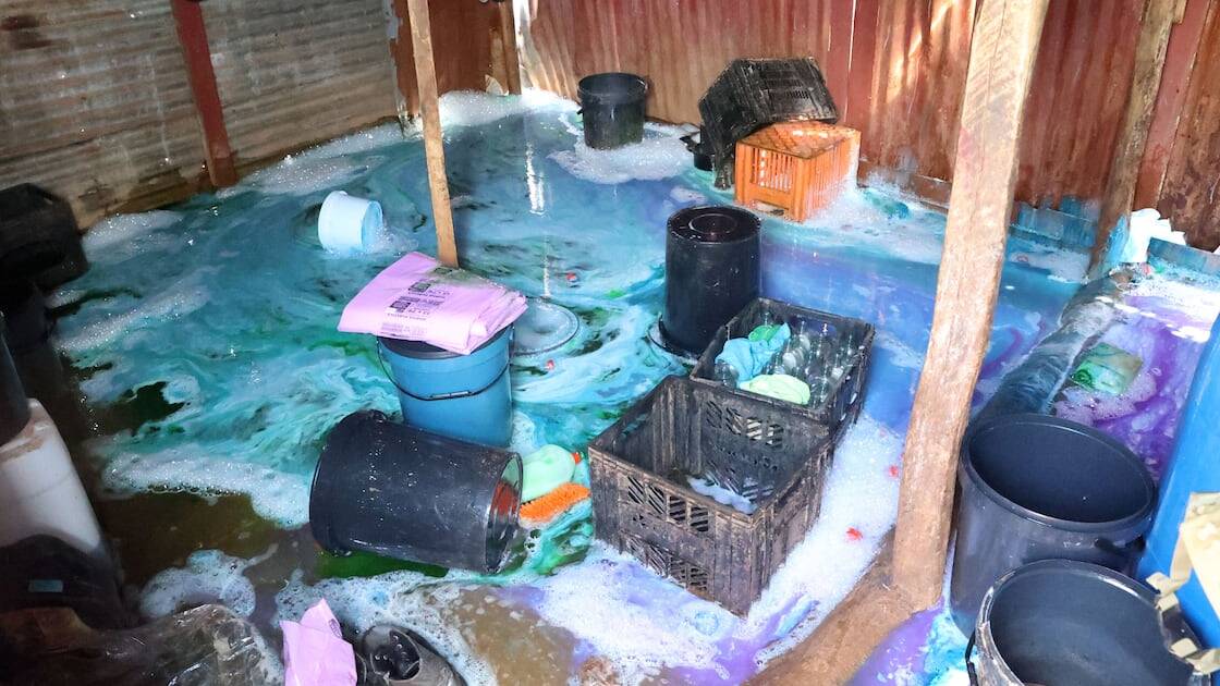 Inside illegal detergent factory in a shack