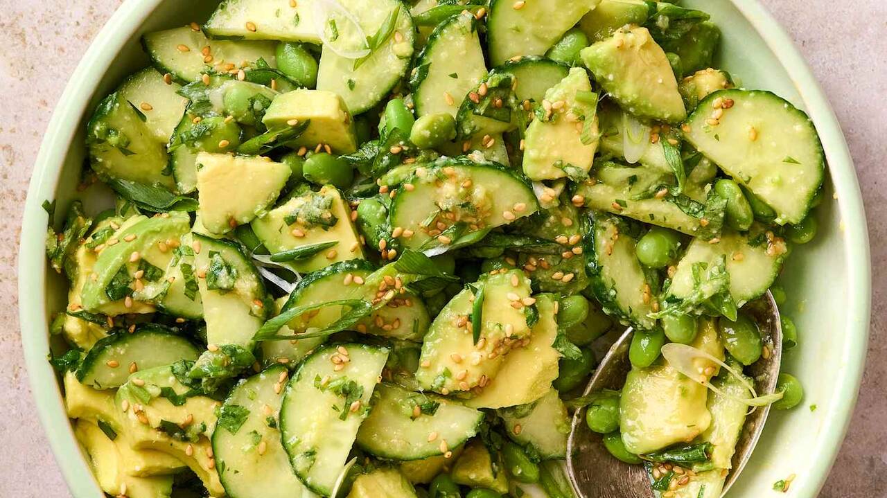 Cucumber Avocado Salad with Miso Dressing tes