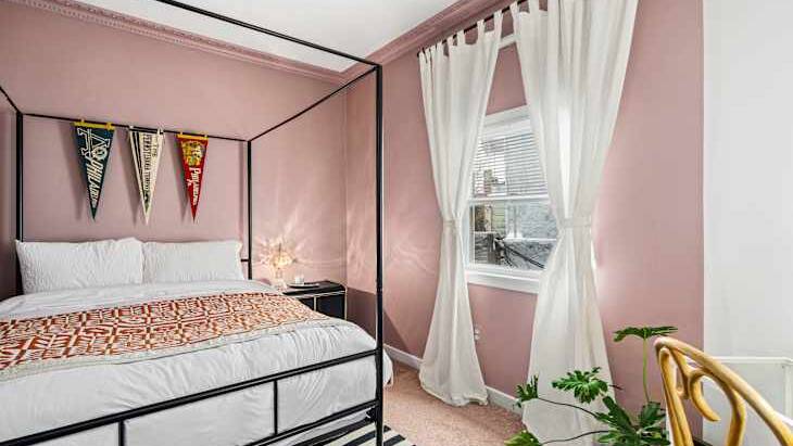See How a Stager Used a Canopy Bed to Make This Small Bedroom Look ...