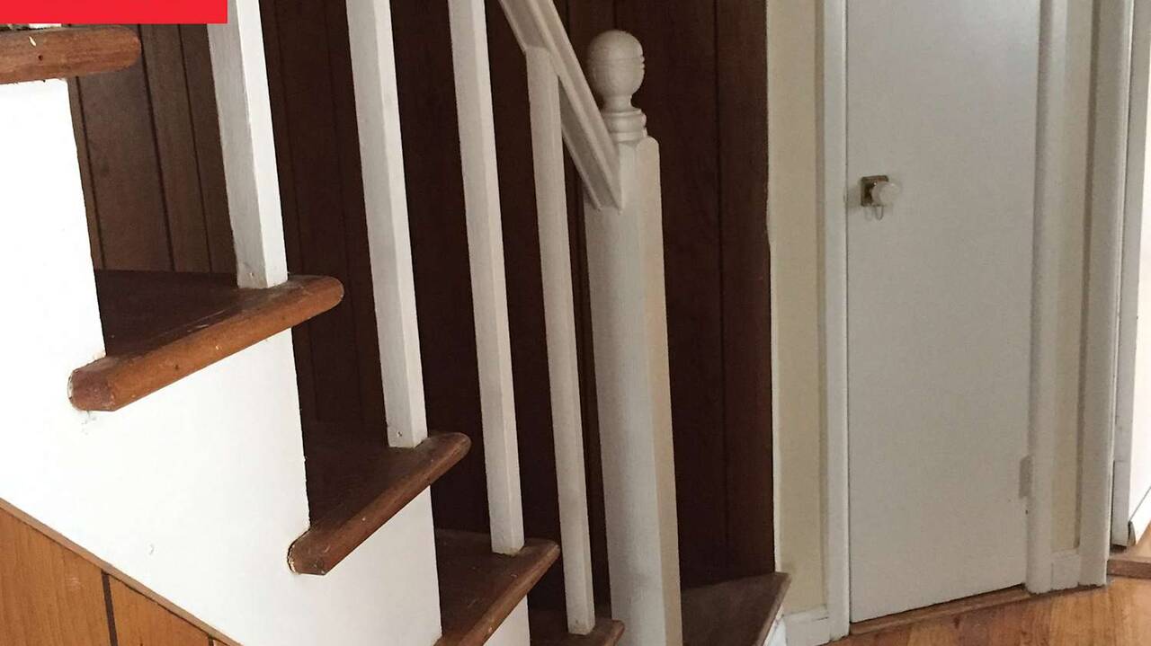 A Very ’70s Dark Wood-Paneled Hallway Got a Butter Yellow Revamp (f...