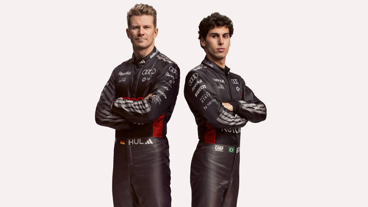 Nico Hulkenberg and Gabriel Bortoleto embrace t... tes
