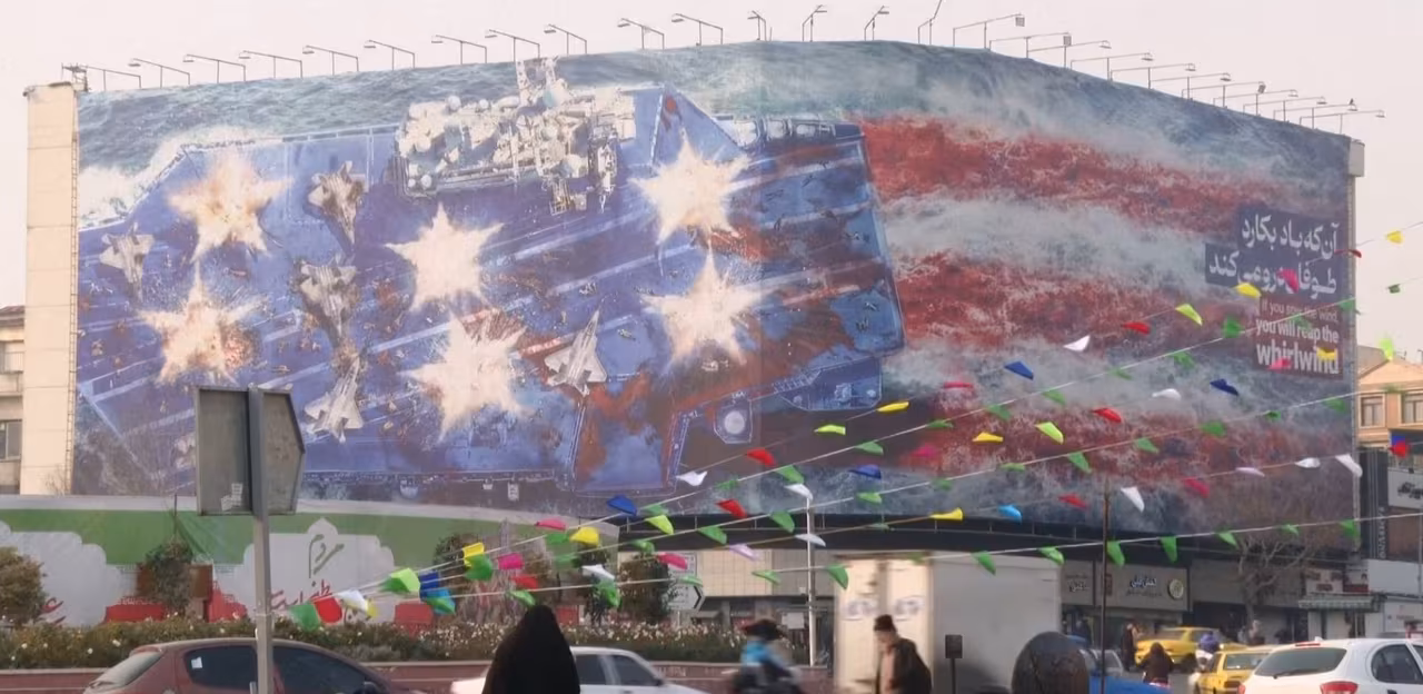 A new mural warning the US not to launch a military strike on Iran has been unveiled in a square in central Tehran.
