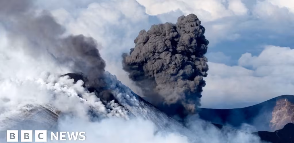 Snow-capped Mount Etna erupts as skiers use its slopes