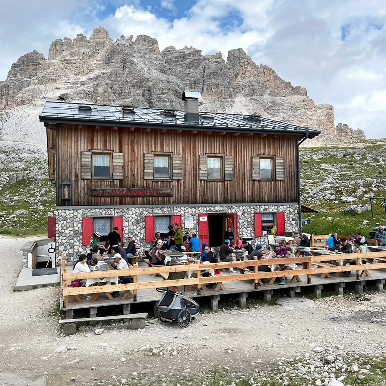If you join the hikers in the Tre Cime di Lavaredo, you'll notice that too. When I arrived at Refugio Lavaredo, there was a sense of shared purpose and communality with hikers of all ages and languages sharing food, beer, wine and aperitifs across long tables, both inside and out. They were connected to the landscape – the steepled ridges, the furious clouds, the mountains watching up there – but, more importantly, to each other. It was more social than functional; the polar opposite of my experiences exploring quieter mountain refuges in Austria.