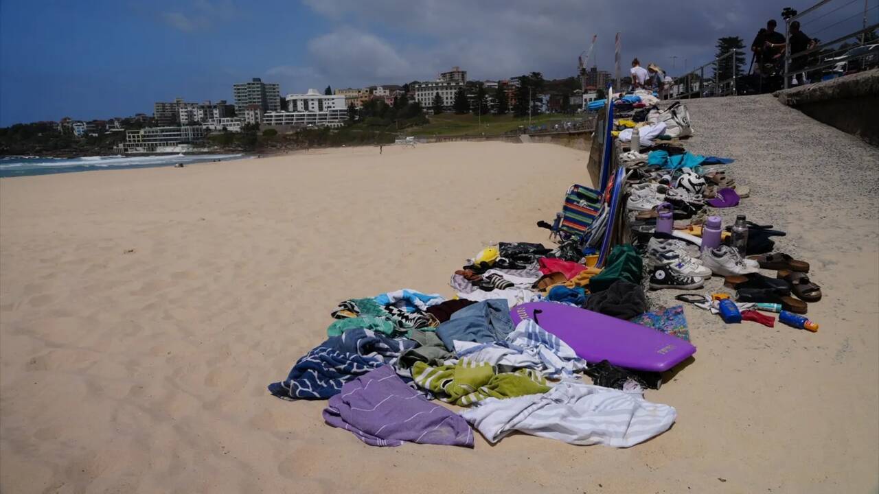 Beach chairs, crumpled towels, wads of clothing, a pair of children's sandals lie in a neat pile at the edge of the sand - all the things people left behind as they fled what police are calling Australia's deadliest terror attack.