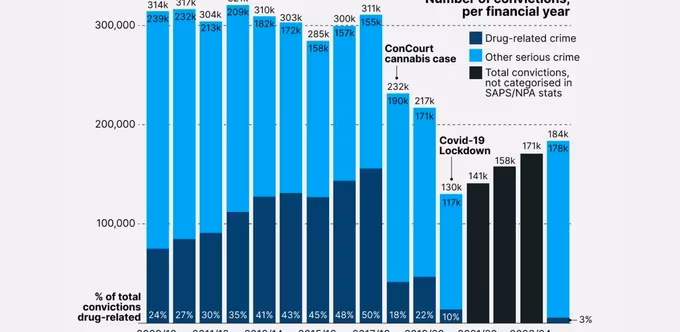 Since cannabis was decriminalised, the number of drug-related convictions in South Africa’s courts has plummeted, and it may be having a positive effect on serious crime convictions.