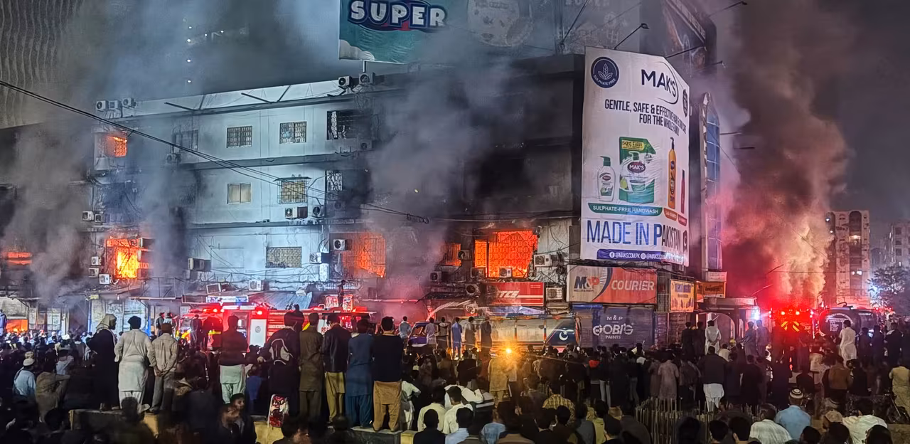 At least three people killed after huge shopping centre fire in Pakistan