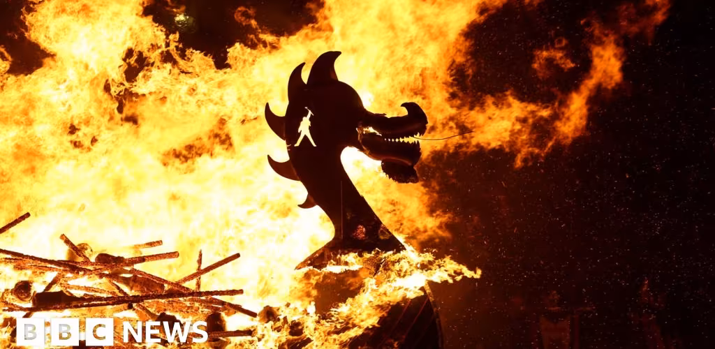 Famous Up Helly Aa festival sets Shetland's skies ablaze