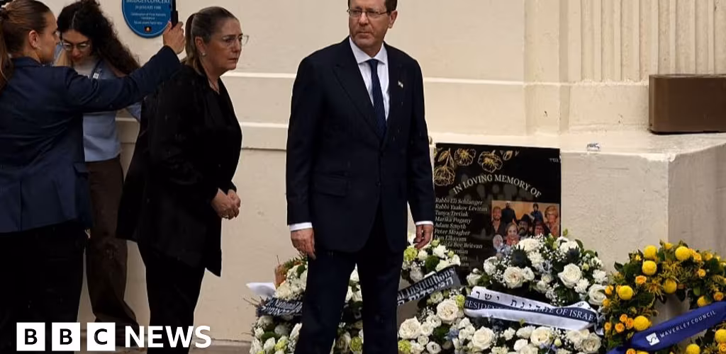 Israeli President Isaac Herzog has laid a wreath and two stones from Jerusalem at Bondi Beach, the site of a shooting that targeted a Jewish festival in December, at the start of a controversial visit.