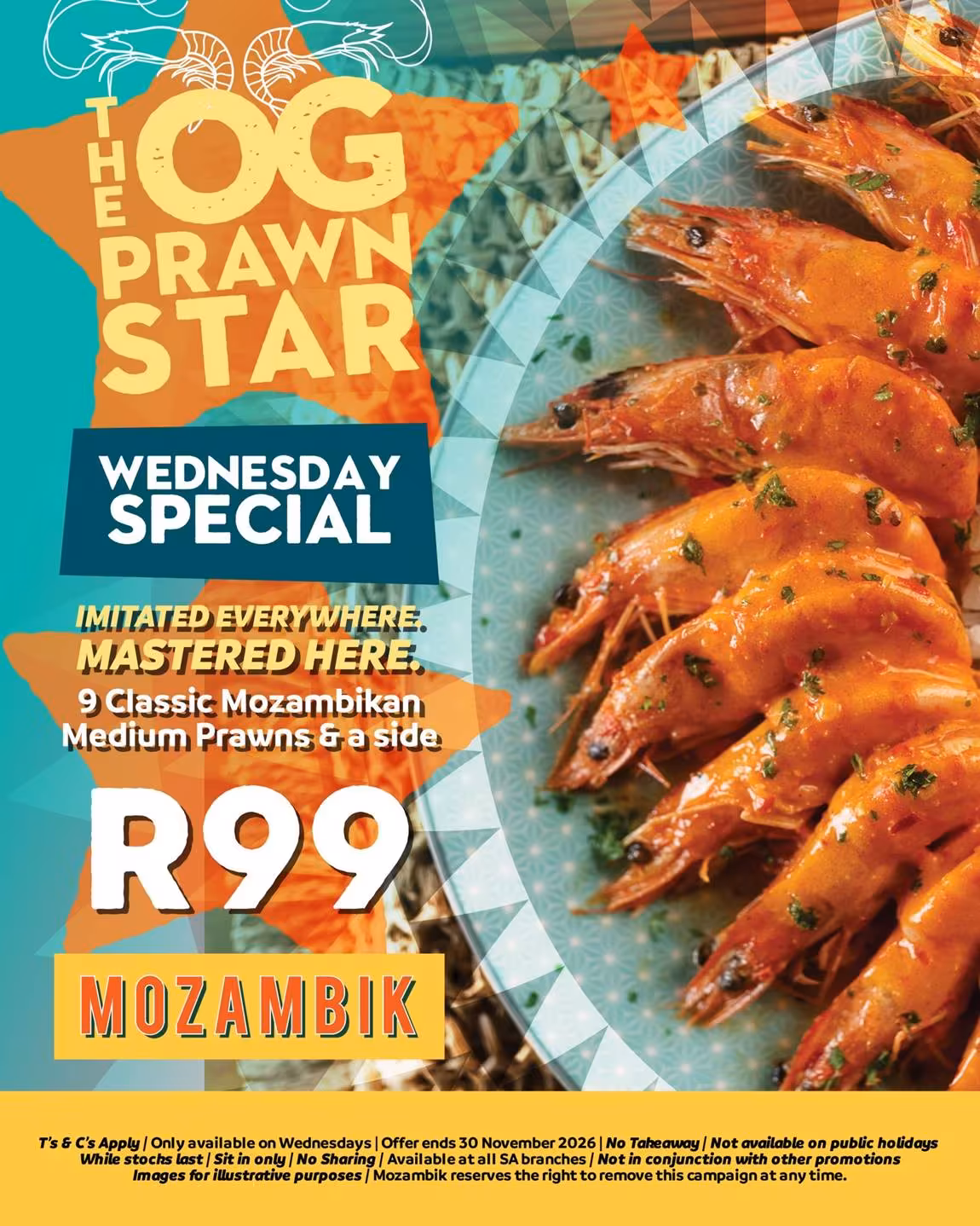 Midweek meals don’t usually come with bragging rights — unless, of course, prawns are involved. Enter Mozambik, where Wednesdays are officially reserved for seafood lovers who know a good deal when they see one.