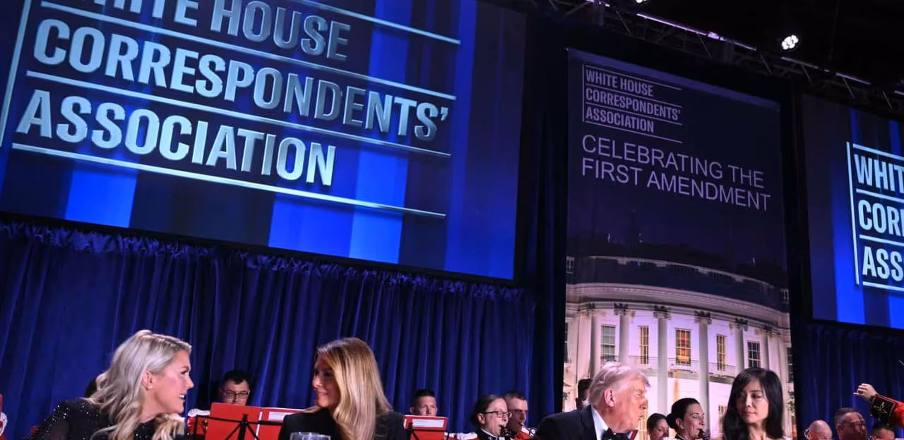 US Secret Service agents bundled Donald Trump from the stage as shots rang out on Saturday at a media gala, in what the president later described as an attack by a “would-be assassin”.