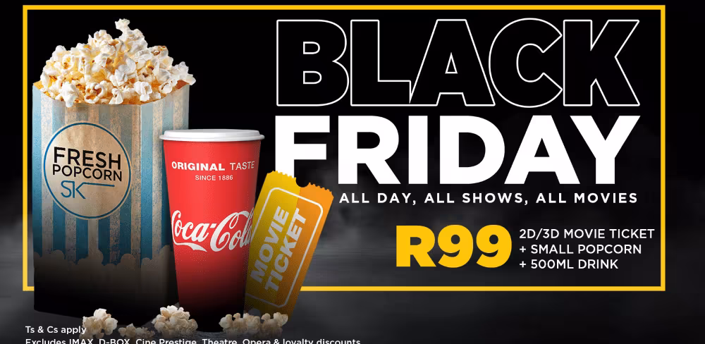 SA Music News Magazine | 25.11.2025 17:43Enjoy a Ster-Kinekor Black Friday R99 movie ticket. – If you are exhausted from all the Black Friday exclusive deals and you need some downtime, Ster-Kinekor has the perfect solution. Book movie tickets for any 2D or 3D film showing at your favourite cinema on Friday, 28 November. You will pay the crazy Black Friday price of only R99 for your movie ticket. Included in the price is a small popcorn and 500ml drink of your choice.