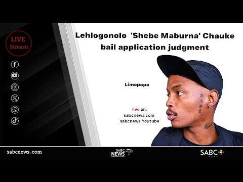 Lehlogonolo 'Shebe Maburna' Chauke bail application judgment SABC News Video | 17.12.2025 17:16 The Polokwane magistrate's court in Limpopo is today expected to deliver judgment in the bail application of musician, Lehlogonolo Chauke, popularly known by his stage name 'Shebe Maburna'.Read more RELATED STORIES Pops Mohamed mixed old and new to reinvent South African music Books and Arts The Seductive Appeal of Burning Comic Books in Postwar America: Book... Books and Arts Teenage Hadebe gives away his new Lionel Messi jersey Kaizer Chiefs A spirit walk with Kelly Khumalo Books and Arts 8 Sensational Christmas Thrillers and Crime Novels Books and Arts South Africa Seal Double Glory at Africa Netball Cup 2025 Stories from South Africa How funding apartheid fails young library users Books and Arts ‘My wishes for Khanyisa at Chiefs’ Kaizer Chiefs Patrick Mayo: 'My wishes for Khanyisa at Chiefs' Kaizer Chiefs Kaizer Chiefs at a crossroads as TOP 8 battle looms Kaizer Chiefs