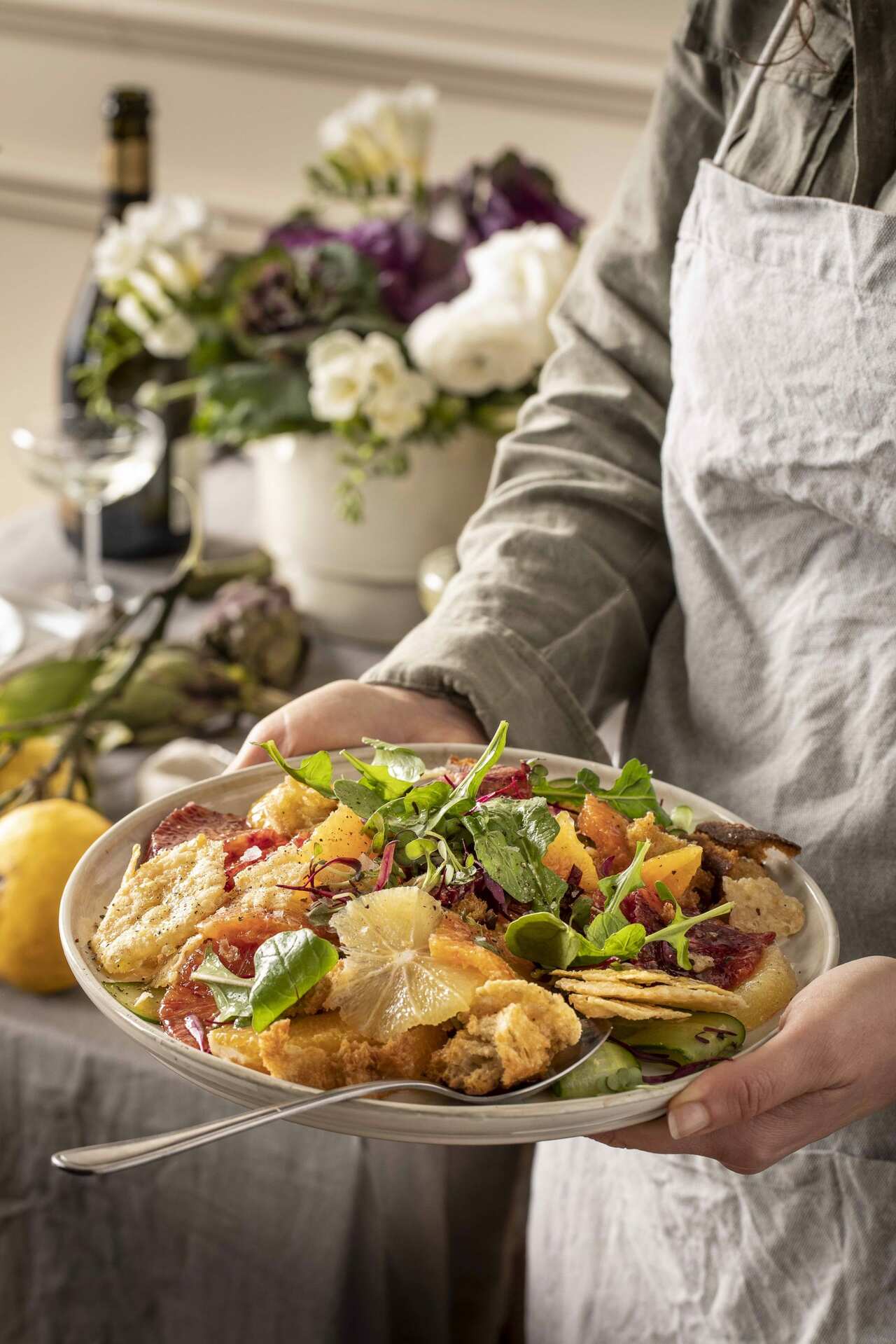 Bright, bold and utterly irresistible, this Citrus Panzanella Salad with Parmesan Chips takes the classic Tuscan bread salad and turns it on its head. Tangy segments of blood oranges, cara oranges and grapefruit mingle with crisp ciabatta croutons, refreshing cucumber ribbons and peppery rocket, all dressed in a zesty citrus vinaigrette. Topped with crisp homemade parmesan chips, this salad is the perfect light lunch or stunning side that hits all the flavour notes.