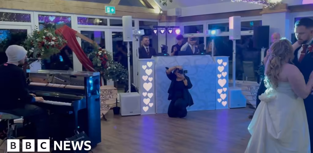 Coldplay's Chris Martin made a surprise appearance at a couple's wedding to play the music for their first dance.