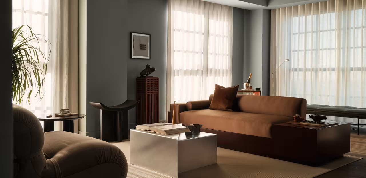 Conran and Partners brought a touch of midcentury warmth to a Canada Water penthouse; welcome to the top floor of The Founding, a raw, warehouse-inspired British Land residential development. The project, set on the 32nd floor, was conceived as an urban home overlooking London, carving for its users a little haven among the clouds.