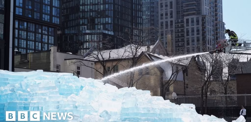 Fire crews thaw rapper Drake’s giant ice installation in Toronto
