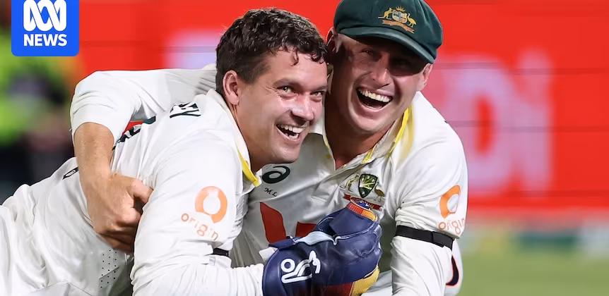 Australian wicketkeeper Alex Carey has taken one of the catches of the summer on day one of the second Ashes Test, but he had a bit of unlikely competition for the take — from a "tackle" from teammate Marnus Labuschagne.