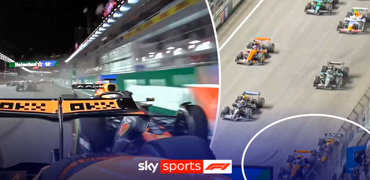 It was a dramatic start at the Las Vegas GP and a bad one for McLaren, as Lando Norris fell to third place, overtaken by Max Verstappen and George Russell, and Oscar Piastri dropped from fifth to seventh, with incidents further behind too.