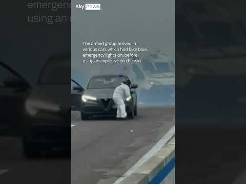 Footage taken on an Italian motorway shows the moment a gang blew up an armoured van in a failed heist.