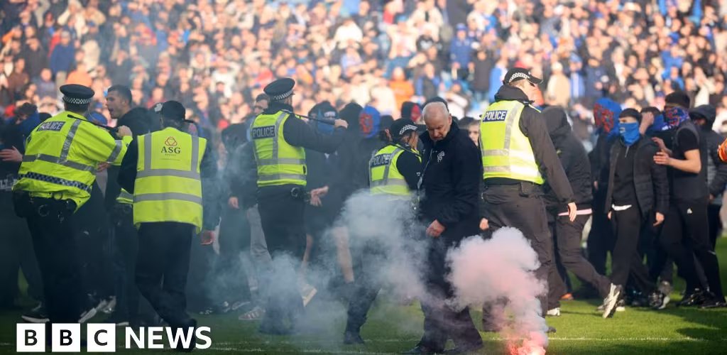 Police separate Celtic and Rangers fans after Ibrox pitch invasion