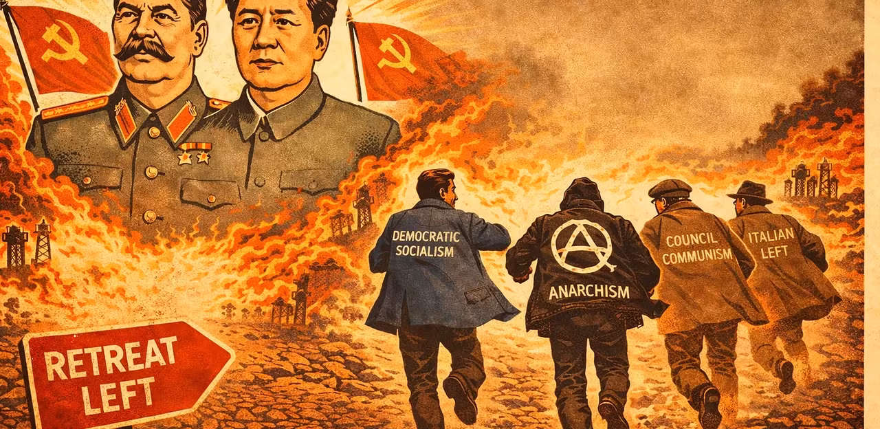 The Cold War cast a long shadow over the Western Left. Red Scare repression, censorship, and surveillance forced many who wished to survive politically to disavow socialist states such as the USSR and China. For some, this disavowal became total. Democratic Socialism, Anarchism, and Left Communism emerged in this context as different strategies of retreat—positions I once inhabited but no longer do.