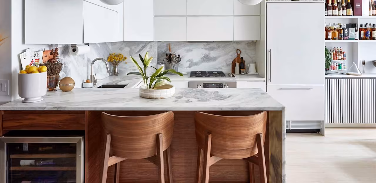 The kitchen island is a natural hangout spot in any household — so you might as well make it comfortable.