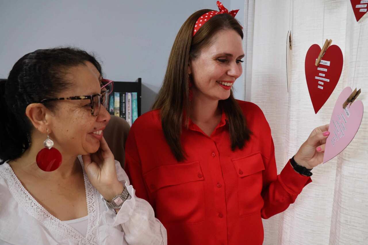 The teachers were overjoyed to receive their words of affirmation placed in cute red hearts, easily making their day and making them feel appreciated.