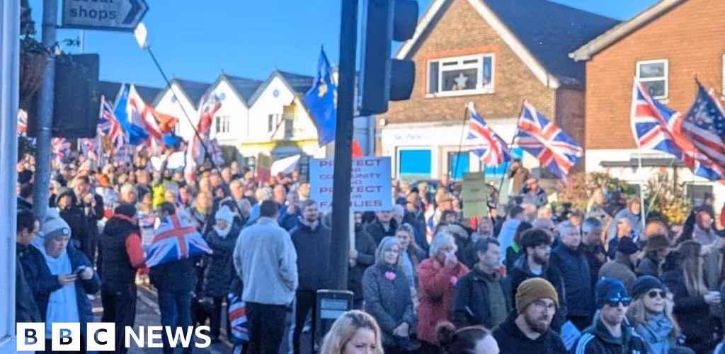 Earlier, participants, including families with children, waved banners and chanted, walking from the former barracks in Crowborough to the town centre.