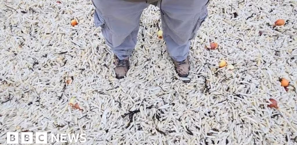 Trisha Barros, who was helping to clear the bags, told BBC Radio Sussex when she saw the beach on Saturday it was "just a sea of chips, it was a bit insane".