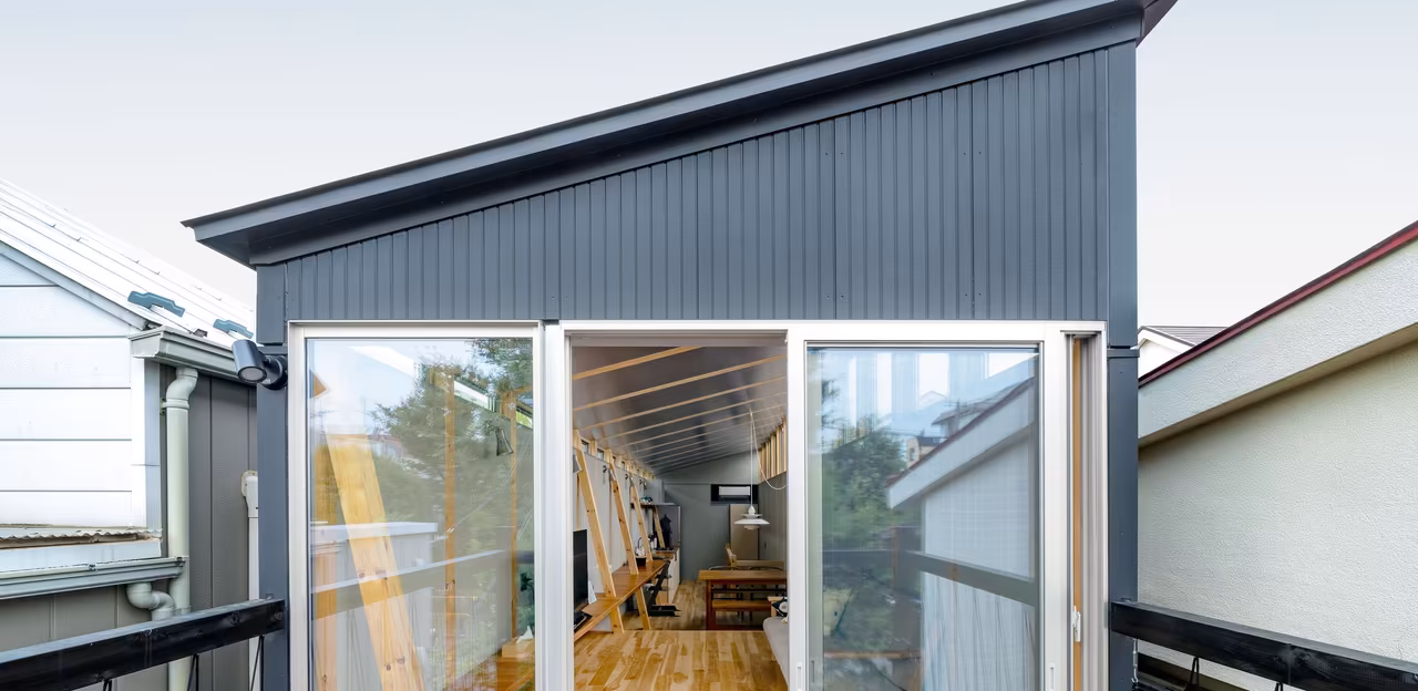 Designed by MIDW, a house nestled in the south-west Tokyo district features contrasting spaces united by the calming rhythm of structural timber beams