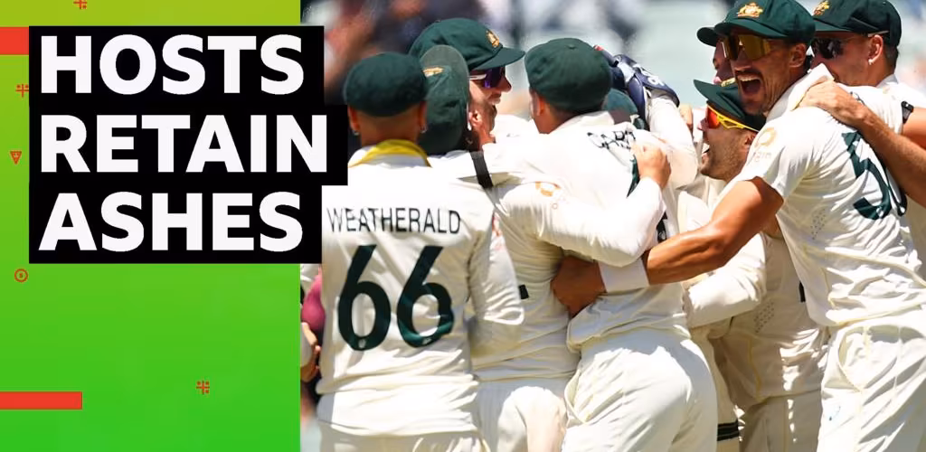 The Ashes third Test - day five BBC | 21.12.2025 11:09 Marnus Labuschagne takes the catch from Josh Tongue as England are bowled out for 352, giving Australia an 82 run win and a 3-0 series lead to retain The Ashes on day five in Adelaide.Read more RELATED STORIES Simba SC appoint Steve Barker, ending eight-year tenure at Stellenbosch Sports Self-Help Books That Offer Quiet Contemplation Books and Arts Edson Castillo targets national team return after Kaizer Chiefs... Sports Australia defeats words with actions to outclass England and romp to... Cricket Where is former AFCON winner and ex-Bafana star Mark Williams? Sports Obama’s Favorite Books of 2025 Books and Arts India clinches T20 Series 3-1 Sports Concerns over Winter Olympics skiing snow levels Sports Alex Carey's maiden Ashes ton rescues Australia, delights Adelaide and... Cricket The Ashes: Defiant Stokes, but England face mammoth task Cricket