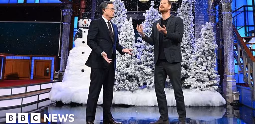 Prince Harry said Americans were "obsessed" with Christmas movies and royalty, but when Colbert queried this, the duke replied: "Really? I hear you elected a king," possibly referencing October's "No Kings" protests directed at the Trump administration.