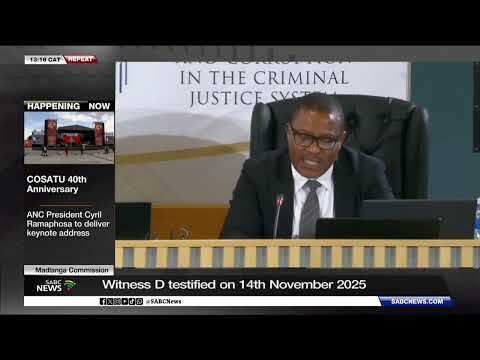 Madlanga Commission | Witness D testimony at the commission SABC News Video | 06.12.2025 19:08 Recap of slain witness D's testimony.Read more RELATED STORIES How to Transform Your Relationships: Attachment Styles with Thais Gibson Podcasts Section of popular Cape beach to be closed throughout festive season Lifestyle Jon M. Chu on the Creative Courage Behind ‘Wicked: For Good,’ Building... Podcasts No Such Thing As The Gordon Ramsay Songbook Podcasts Chiefs vs. Texans: When and Where to Watch on Sunday, Plus the Full 2025... Celebrity News Saudi Pro League ready to fund Salah move Soccer Bilal El Khannouss leads Stuttgart into stern Bayern Munich test Soccer Garth Fields returns to Durban with 'The Michael Jackson HIStory Show'... Celebrity News Ex-Mamelodi Sundowns mentor approached by foreign club to replace fired... Soccer TNB Tech Minute: AWS Unveils AI Agents It Says Can Work for Days at a... Podcasts