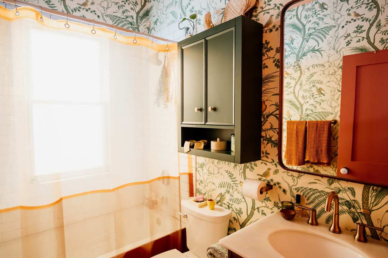 A few months ago I moved into a new apartment in Los Angeles, California. I love everything about it — except for the tiny guest bathroom. Not only is it quite small, but it’s also pretty sterile. So I’ve been on the hunt for low-lift, renter-friendly ways to add some character to the space; and finally on a recent Instagram scroll, I came across a photo of a bathroom that stopped me in my tracks.