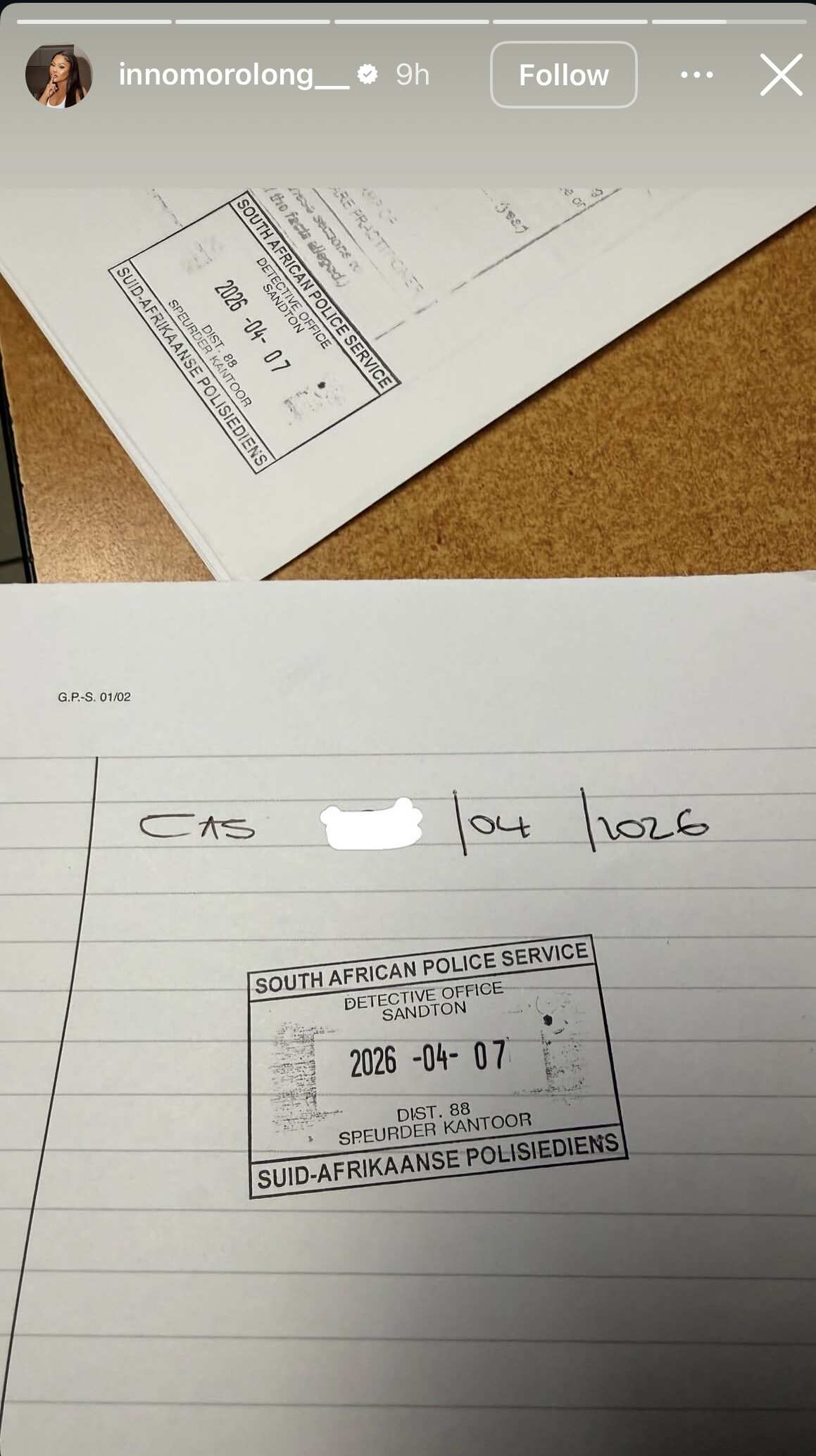 Morolong posted a photo of herself at Sandton police station shortly after the alleged incident. In her Instagram story, she claimed that the attack involved musician and soccer player Andile Mpisane, who is also the son of well-known businesswoman Shauwn Mkhize.