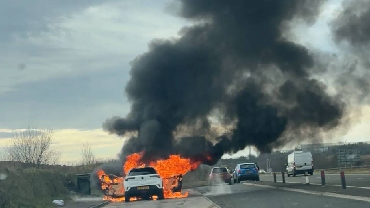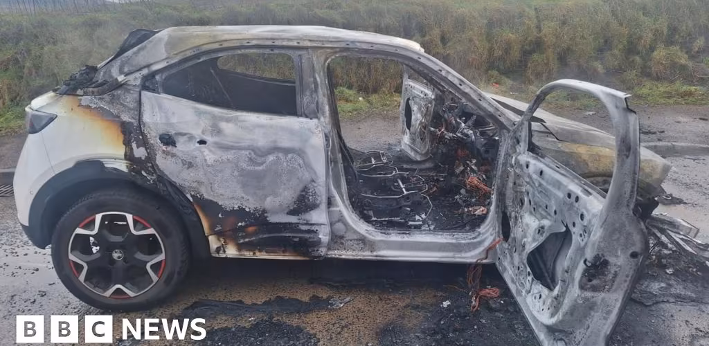 After warning lights came on, she pulled into a lay-by, but moments later smoke filled the car and she rushed to get out.