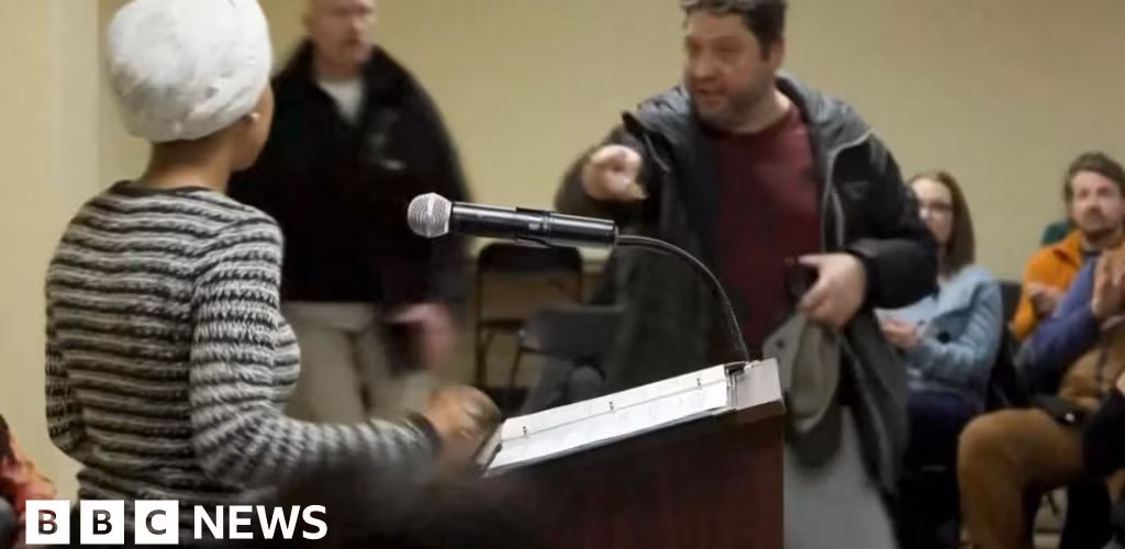 Watch: Moment Minnesota Representative Ilhan Omar is attacked at town hall