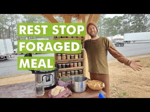 Cooking a 100% foraged meal at a rest stop on the road to Florida!