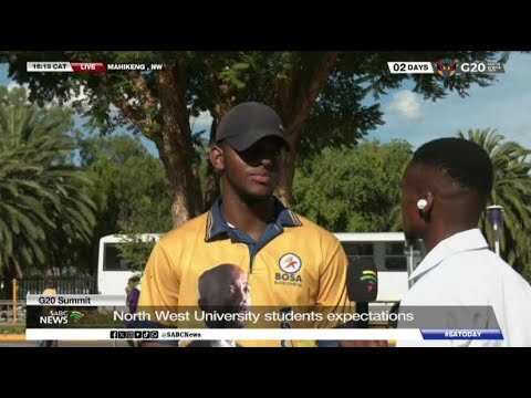G20 Summit | North West University students want G20 focus on education SABC News Video | 20.11.2025 22:10 As time draws near to the G20 Leaders' Summit this weekend, expectations are high from students at North West University.Read more RELATED STORIES Woman Behind Helderberg Bokashi Initiative Wins National Award Environment Mutirao: Brazil's Indigenous answer to the climate crisis Environment DA Leader John Steenhuisen Faces Scrutiny Over Unpaid Credit Card Debt Politics KwaZulu-Natal MEC Pledges Support for Tugela Ferry Irrigation Projects Environment Judges and Talent announced for #MissSoweto2021 Miss Soweto 2021 GNU not a marketplace to negotiate or trade majority rights, says... Politics Cutting methane offers hope as fast, cheap climate solution Environment Europe struggles to cope with illegal waste dumps Environment WATCH LIVE | Cross-examination of Brown Mogotsi continues at Madlanga... Politics WATCH LIVE | Molefe Fani appears before ad hoc committee probing... Politics