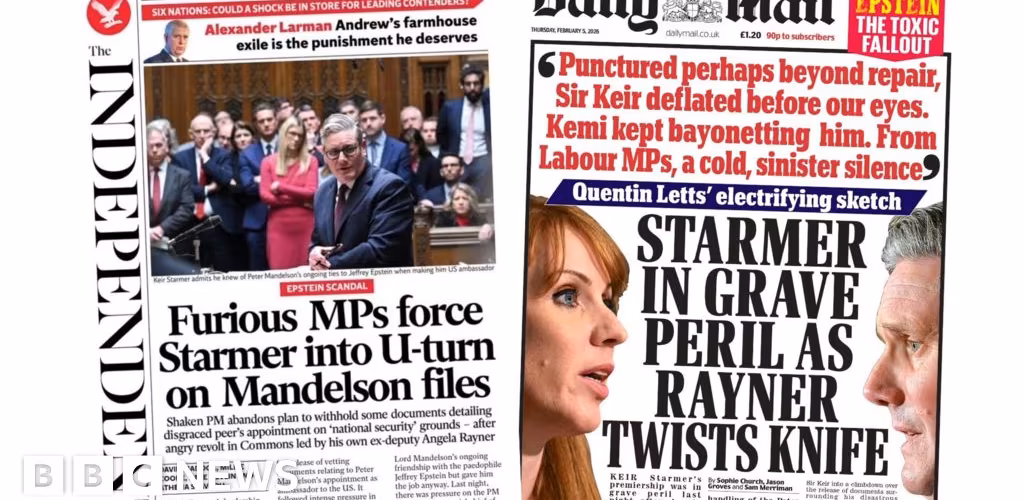 'U-turn on Mandelson files' and 'Starmer in grave peril'