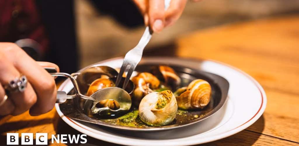 Edible snails - or escargot - are a French delicacy, usually cooked in garlic butter or wine before being extracted from their shell.