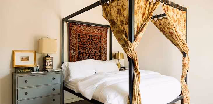 So many people (myself included!) search high and low for ways to make a primary bedroom stand out — and often, the cherry on top of a beautiful bedroom is a stunning headboard. But many modern headboards lean low-profile, minimalist, and reserved, leaving lots of wall space above a bed. The solution? Believe it or not, a content creator just found a new way to use tablecloths to create a faux canopy bed situation. I’m officially influenced.