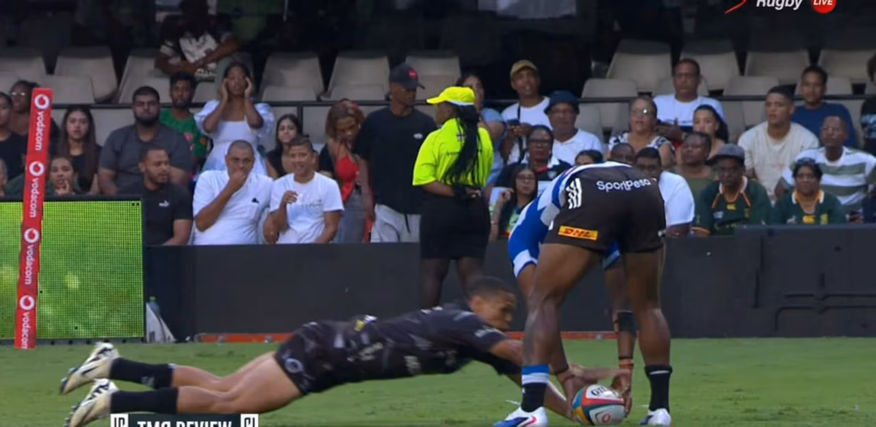 Was this a try for Sharks wing Jaco Williams or had Stormers fullback Warrick Gelant dotted the ball down?