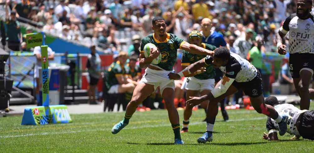The Blitzboks staged a thrilling comeback in the second half to clinch a nail-biting 19-14 victory over New Zealand in their second match of the Cape Town Sevens, showcasing resilience and determination.
