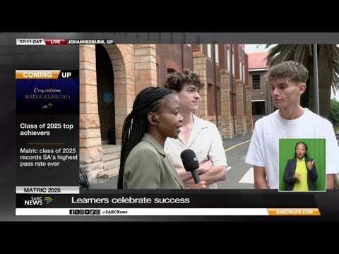 Class of 2025 | Catching up with matriculants at Helpmekaar College SABC News Video | 13.01.2026 13:15 SABC News reporter Neria Hlakotsa is at Helpmekaar College in Johannesburg following up with 2025 matriculants celebrating their achievements.Read more RELATED STORIES Siya Kolisi returns to Durban after 'baecation' with Rachel John Lifestyle IEB announces 98.31% pass rate: Here’s how many got a Bachelor’s Degree... Latest News RIP: Rescued tiger tragically dies after WC wildfires Lifestyle Stellenbosch’s open-air wine and food Street Soirées return Food & Drinks SCA upholds eviction order in matrimonial property dispute Latest News HEART NPO Rallies to Get 150 Children School-Ready Before The 1st Bell... Lifestyle Deaths from Iran protests reach more than 500, rights group says Latest News ‘Best of the best’: Top matric achievers honoured Latest News Liboshiwe isoka ebelishaya intombi Izindaba (Top News) WEATHER: Life-threatening disruptive rainfall triggers widespread... Latest News